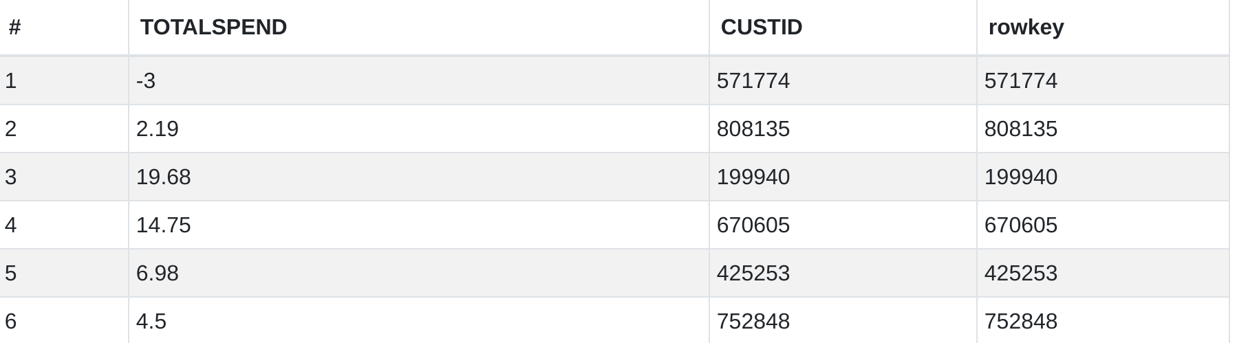 For testing, Burroughs also provides a second, synthetic dataset called customers which can be joined with the transactions data. The customers data can be produced in a similar fashion using customers_producer and has the following schema: