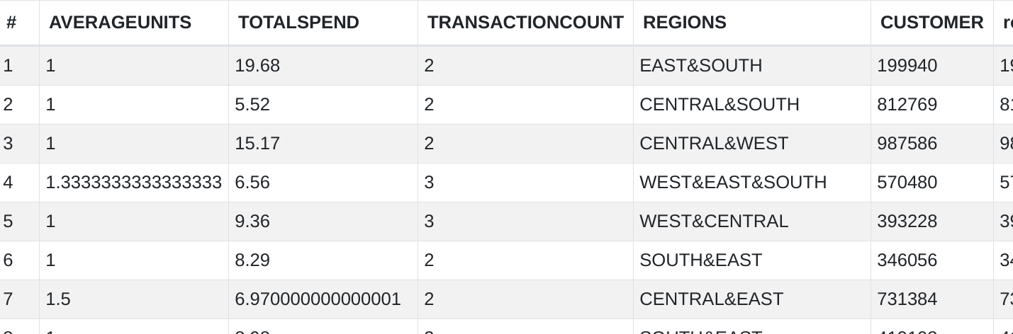 | StoreR | String | Identifies which location it was purchased at. One of SOUTH, EAST, WEST, or CENTRAL |