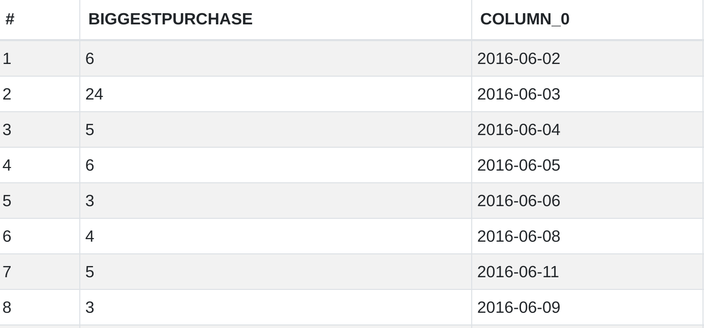 You can also use the cast function to transform a literal date to the proper integer representation for comparison, like in the following query, which finds largest purchase in terms of quantity for each date after June 1, 2016.
